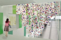 This project was done for a restrictive competition that Hospital de Sant Joan de Déu did for the interior setting of the new building in 2013. Our objective was to transform the usual image of the hospital, that do not match any space devoted entirely to children, into one that centers with cool colors and synthetic materials, to a new colorful world where the magic, the fun and the entertainment are a constant.